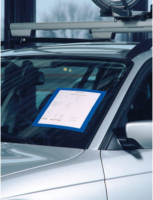 Insérez tout simplement votre fiche A4 dans la pochette adhésive et fixez celle-ci en quelques secondes à l’intérieur du pare-brise ou sur la vitre latérale du véhicule. Réutilisable, pas de résidu de colle. Indéformable et résistant à la chaleur et à l’humidité.