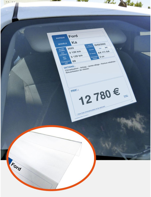 Idéal pour afficher les informations de prix, ce porte-affichette vertical en polycarbonate transparent permet d'insérer facilement un format A4. Elle s'accroche facilement au pare-soleil.