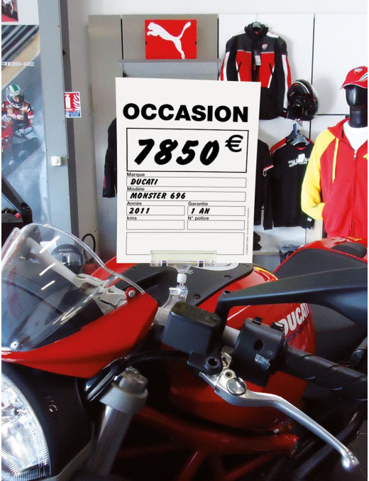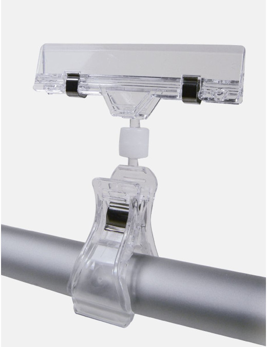 Pince sur pivot amovible à accrocher sur un guidon, poignée. Dotée d'une deuxième pince à l'extrémité, elle vous permet également de fixer facilement une affichette prix pour une visibilité maximale. Robuste et résistante, elle assure une fixation sécurisée tout en préservant l'intégrité de vos supports. Grâce à son pivot amovible, vous pouvez ajuster l'angle de lecture pour une meilleure visibilité de vos prix.