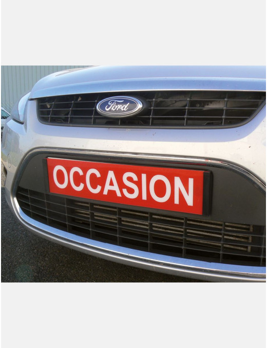 Ce cache-plaque Occasion en PVC PMMA 2 mm traité UV mettra en valeur vos véhicules exposés sur votre parc et pourront être vus de loin. Imprimé sur un film adhésif qui est collé sur le support, il est très résistant. Mode de fixation par 4 velcros (inclus) ou avec le fixe plaque à acheter en supplément.