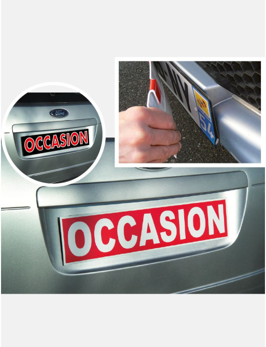 Ce cache-plaque Occasion en PVC résistant à double crochets mettra en valeur vos véhicules exposés sur votre parc et pourront être vus de loin. Imprimé directement sur le support, il est très résistant. Il s’accroche facilement à l’aide de deux pattes à faire glisser à l’avant ou à l’arrière du véhicule sur la plaque minéralogique.