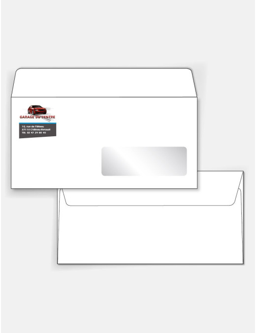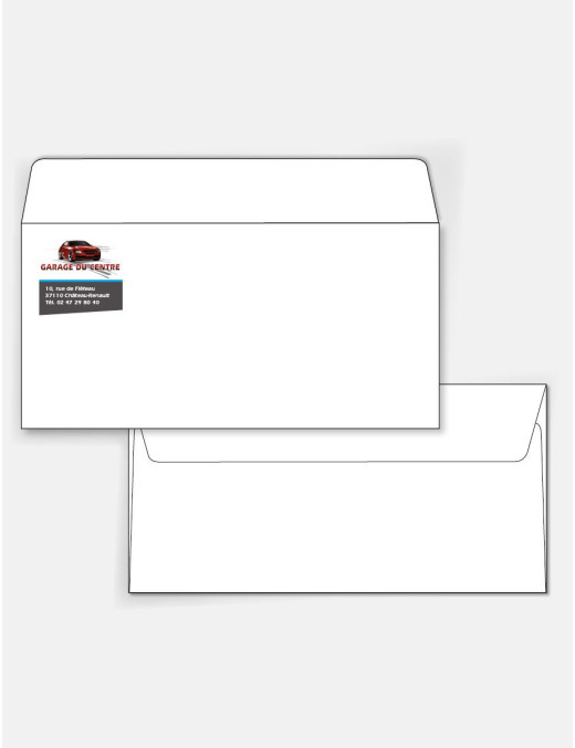 Enveloppe blanche de format standardisé autocollante avec bande de protection.
