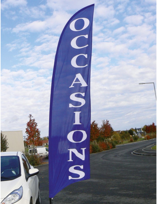 Opter pour ces voiles pour animer votre parc auto, c'est aussi choisir une solution qui se voit de loin. Faciles à installer et à entretenir et résistantes aux intempéries. Voile Beach line grand format 100% polyester 115g. Impression inaltérable, graphique visible double face par transparence. Fourreau latéral élastique noir, ourlets sur les pourtours et un mousqueton. S’adapte uniquement sur le mât du kit KIT7540.
