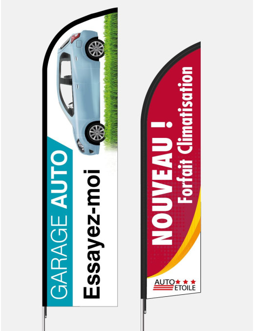 Créez sur mesure un drapeau à votre image, c'est aussi choisir une solution qui vous ressemble. Vous nous fournissez les visuels et le texte et nous vous proposons un BAT. Faciles à installer et à entretenir et résistantes aux intempéries. Voile Beach line maille Supralon 100% polyester 115g, également disponible en maille micro perforée (conçue pour les régions ventées). Impression inaltérable, graphique visible double face par transparence. Fourreau latéral élastique noir, ourlets sur les pourtours et un mousqueton.