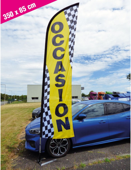 Pour animer votre parc auto, l'utilisation de drapeaux est une idée originale et efficace. Voile Beach line grand format 100% polyester 115g. Impression inaltérable, graphique visible double face par transparence. Fourreau latéral élastique noir, ourlets sur les pourtours et un mousqueton.