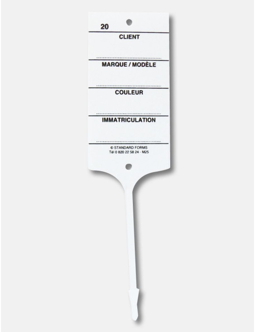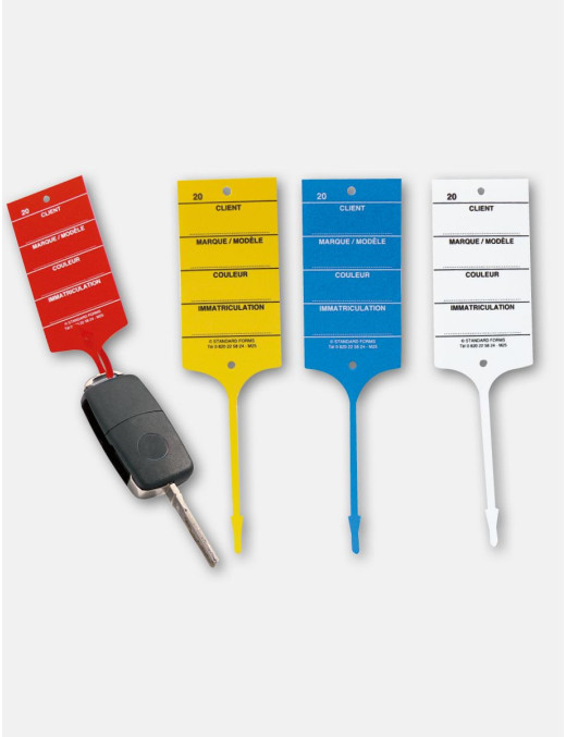 Etiquettes clés en plastique souple et très résistant avec languette spécialement conçues pour le rangement des clés à l'atelier. Chaque étiquette comprend un espace large pour écrire des informations d'identification claires. Pour les remplir utilisez le feutre indélébile, réf PA33.