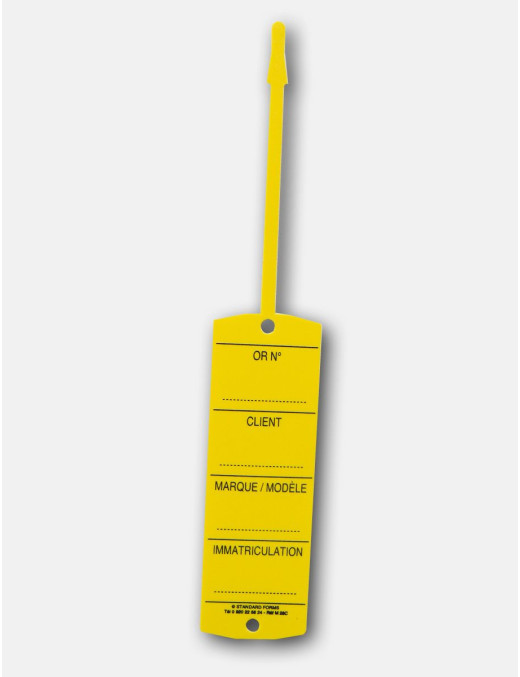 Etiquette clés en plastique souple et très résistant avec languette spécialement conçue pour le rangement des clés à l'atelier. Sens de la languette inversée. Chaque étiquette comprend un espace pour écrire des informations d'identification claires. Pour la remplir utilisez le feutre indélébile, réf PA33.