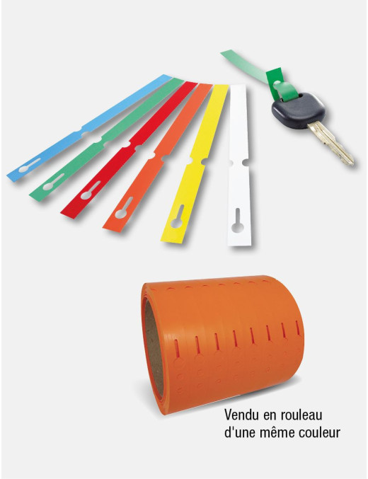 Etiquettes clés en matière souple et résistante spécialement conçues pour le rangement des clés à l'atelier. Chaque étiquette comprend un espace pour écrire des informations d'identification claires. Sa bande de couleur vous permet de trouver les clés sur votre tableau d’un seul coup d’œil.
