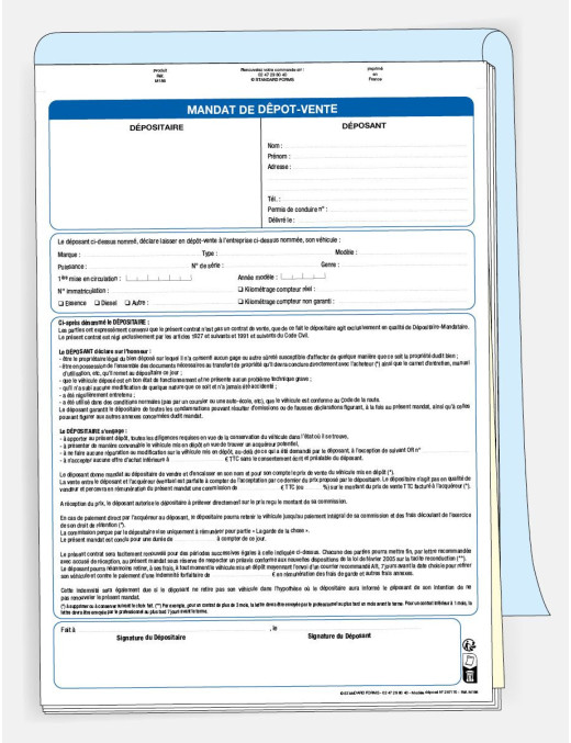 Un contrat de dépôt-vente automobile est un accord entre un propriétaire de véhicule et un prestataire de services, dans lequel le propriétaire confie son véhicule au prestataire pour qu'il le vende en son nom. Le prestataire s'engage à vendre le véhicule au meilleur prix possible et à reverser une partie du montant de la vente au propriétaire, après déduction de ses frais de commission. Le contrat précise également les conditions de vente, les responsabilités de chaque partie et les modalités de résiliation du contrat.