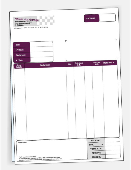 Liasse autocopiante imprimée sur papier 60 g sur mesure en 2 ou 3 exemplaires à personnaliser entièrement recto ou recto/verso en quadri.