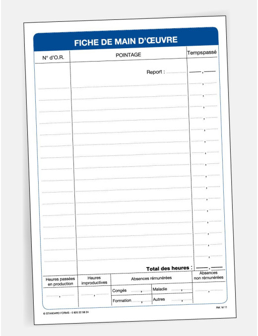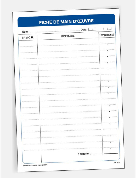 La fiche d'ordre de réparation en atelier est un document utilisé pour consigner les informations de temps de main d'œuvre relatives aux réparations effectuées sur le véhicule par le salarié.