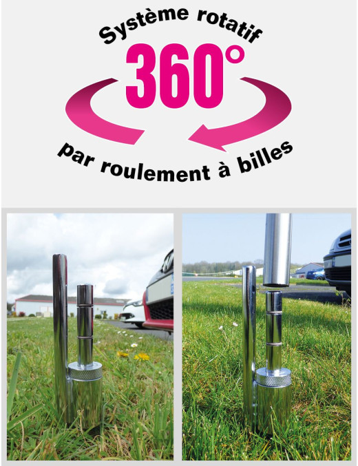Grâce à ce système vous pouvez retirer et replacer vos mâts (le soir ou en cas de grand vent) en 2 secondes.