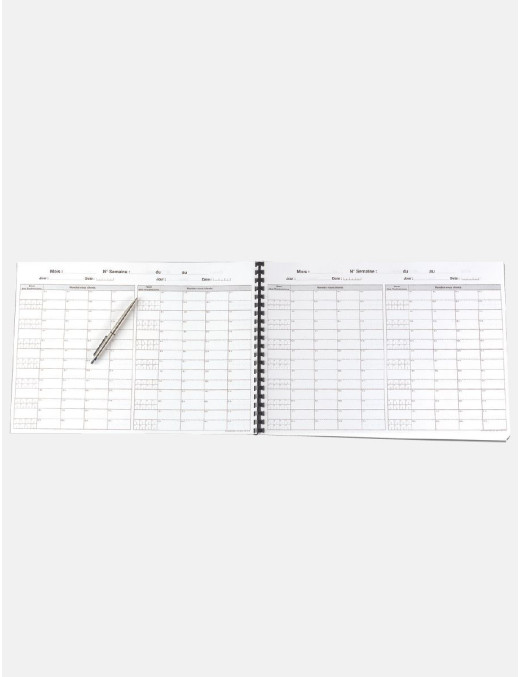 Grâce à ce cahier, les mécaniciens et l'équipe de l'atelier automobile peuvent mieux gérer leur emploi du temps, éviter les doubles réservations et assurer un service clientèle de qualité. 1 semaine par page. Plage horaire 8h/11h - 14h/17h.