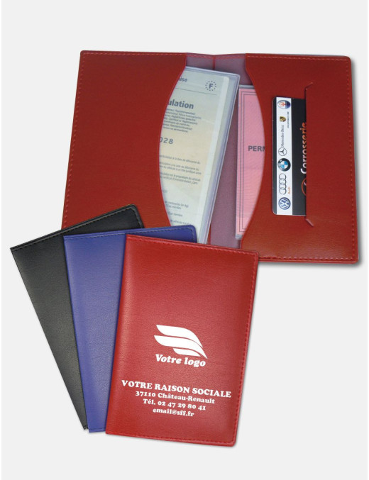 Très beau porte-carte grise 2 volets en PVC aspect cuir lisse doublé cristal satin pour une bonne tenue. Finition cousue ton sur ton ou contrastée : noir, blanc, bleu turquoise, bleu royal, marine, rouge, vert, jaune, gris clair, gris foncé, anis, orange. Pochettes intérieures + une encoche sur un volet pour insérer des documents format carte de crédit. Pochette transparente indépendante 3 volets pour insérer la carte grise. Impression blanche ou noire de vos coordonnées sur un seul volet.