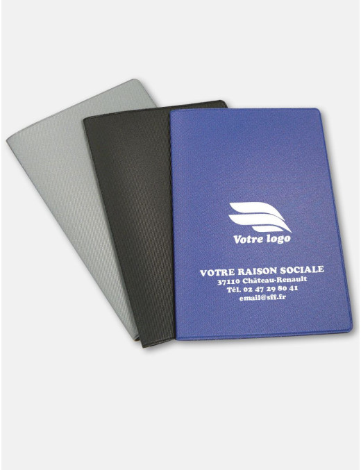 Ce porte-carte grise est fabriqué en PVC de haute qualité avec une finition aspect "sergé" offrant une texture originale. Il se compose de 3 volets pleins et de 3 poches cristal transparentes à l'intérieur, parfait pour insérer et protéger votre carte grise en toute sécurité. Votre personnalisation par impression de votre choix en blanc ou noir sur un seul volet. Pratique et esthétique, il est l'accessoire parfait à offrir à vos clients.Impression blanche ou noire de vos coordonnées sur un seul volet.