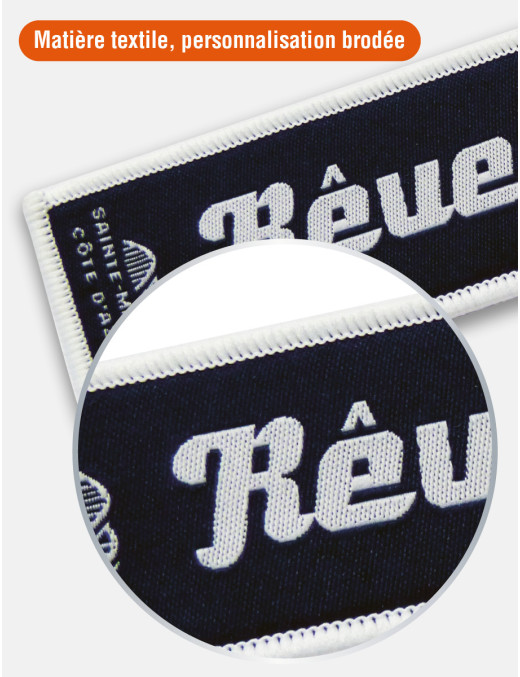 • Votre personnalisation tissé dans la matière de la sangle de 1 à 4 couleurs au choix