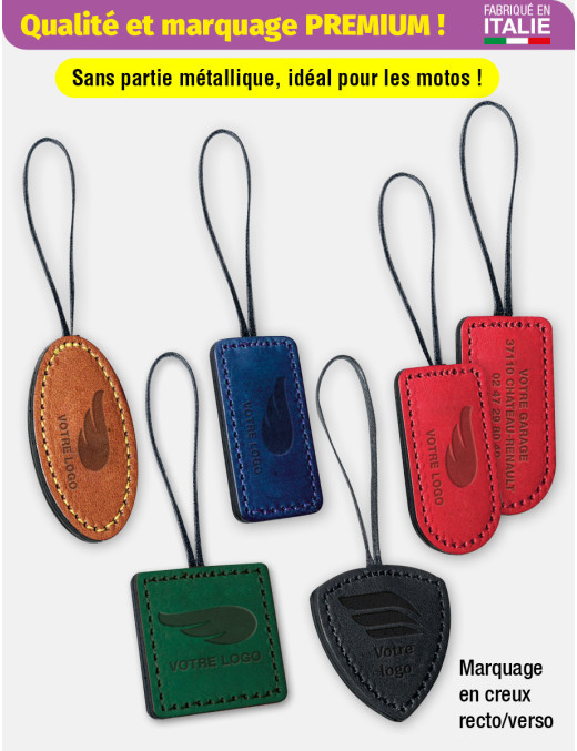 Porte-clés en simili cuir au touché velouté, pensé pour allier confort, sécurité et style au quotidien. Sans aucune partie métallique, grâce à sa lanière solide en textile tissé, il est idéal pour les motos puisqu’il ne peut pas rayer le réservoir, tout en restant parfaitement adapté aux clés de voiture. Avec sa finition cousue soignée et son épaisseur de 5 mm, ce porte-clés offre une excellente prise en main et une vraie sensation de qualité, en faisant un accessoire pratique autant qu’un support de communication appréciée par vos clients. Marquage en creux de votre personnalisation recto/verso.