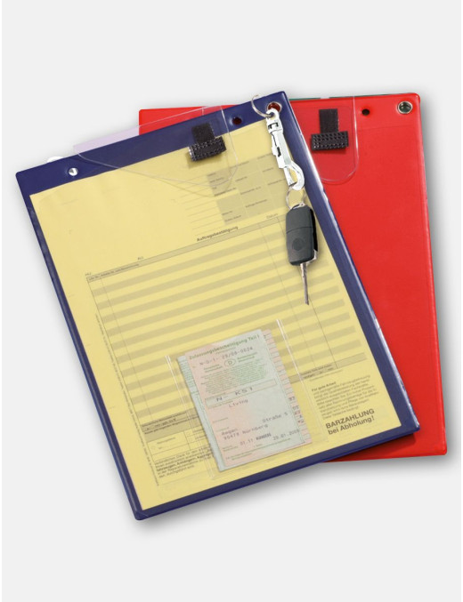 Porte-OR en PVC résistant, intérieur rigide. Pochette transparente devant. Ouverture en haut et sur le côté droit. Fermeture en haut par scratch + une petite pochette (9 x 11,5 cm) pour le n° du véhicule / papiers. La poche arrière avec soufflet (3 cm) permet d’insérer le carnet de garantie ou tout autres documents épais. Il est équipé d’un mousqueton pour accrocher les clés du véhicule.