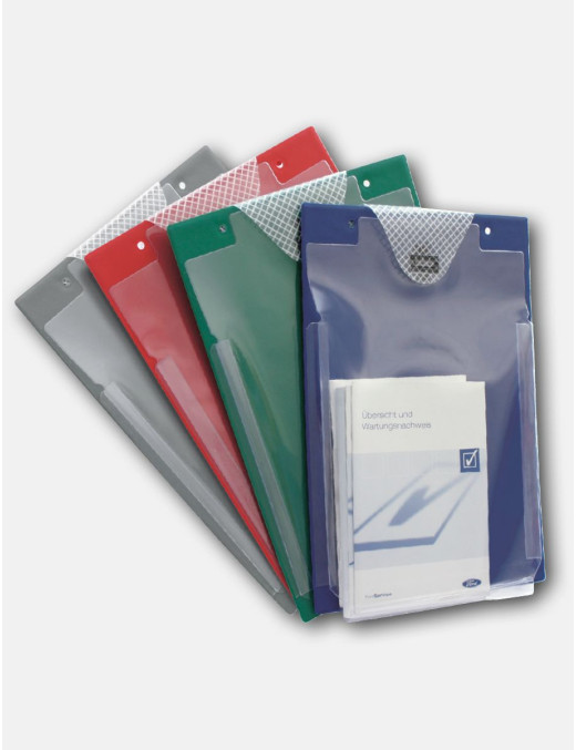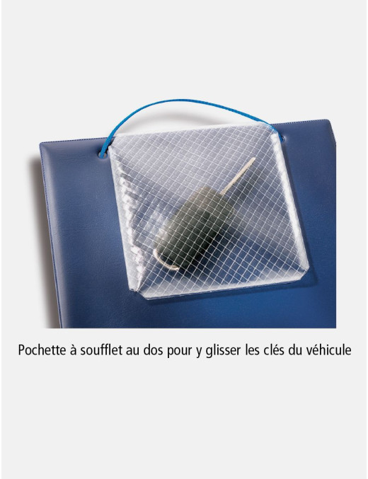 Porte-OR en PVC résistant, intérieur rigide. Devant, il comporte une pochette à soufflet de 3,5 cm à fermeture par scratch en haut. Au dos, une pochette de 13,5 cm renforcée pour les clés. Une cordelette d’accrochage.