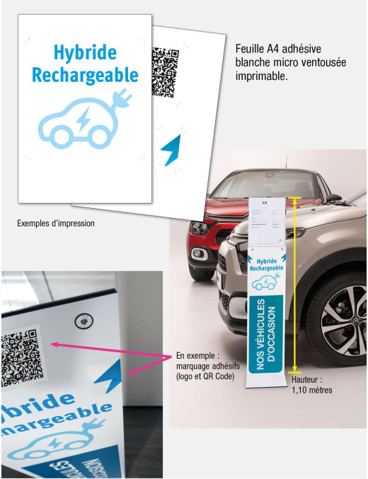 Adhésif blanc micro ventousé indéchirable et repositionnable permettant une pose aisée sans bulle et un repositionnement facile sans trace de colle. Impression numérique quadri recto seul sur un format A4 (autre format, A3 maxi : sur devis, nous consulter).