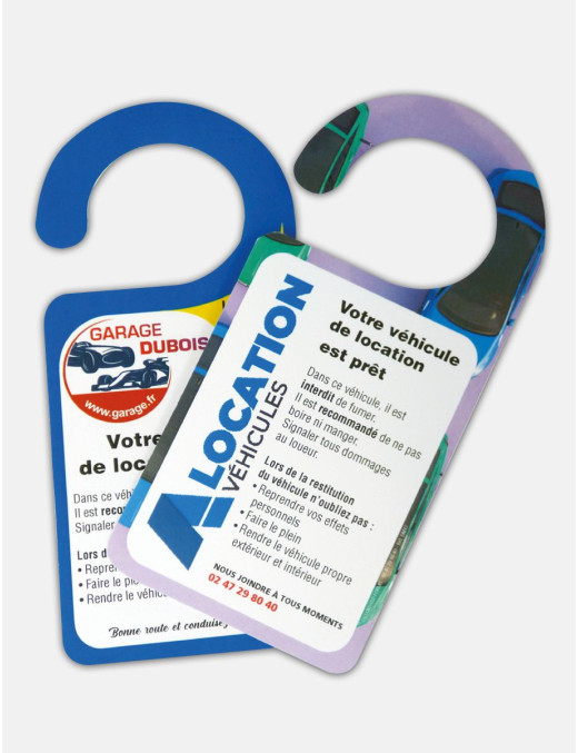 Accrochez cette cravate pour indiquer que le véhicule est prêt à être remis à votre client. Entièrement personnalisable, vous pouvez par exemple ajouter vos offres de location, un check de contrôle avant la remise des clés à votre client, etc (nous vous présentons quelques exemples pour vous aider). Impression quadri recto seul sur papier couché brillant 250 g. Découpe forme cintre adaptée pour tous types de rétroviseurs. Utilisation en intérieur.
