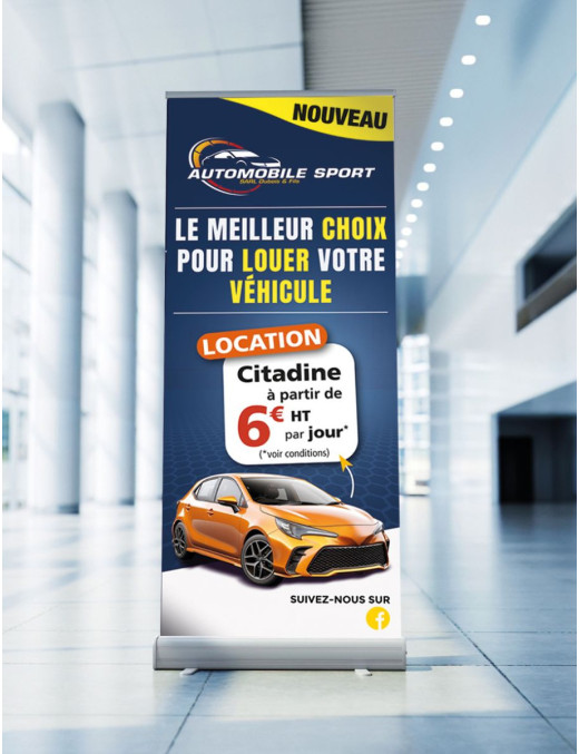 Le roll up est fait pour vous et est entièrement personnalisable. Avec sa facilité d’utilisation, sa polyvalence et son impact visuel, le roll up un outil incontournable dans le cadre de votre communication. Vous le disposez où vous le souhaitez en intérieur. Structure en aluminium légère et solide. Accroche de la bâche par système de clip automatique. Il est livré dans son sac de transport.