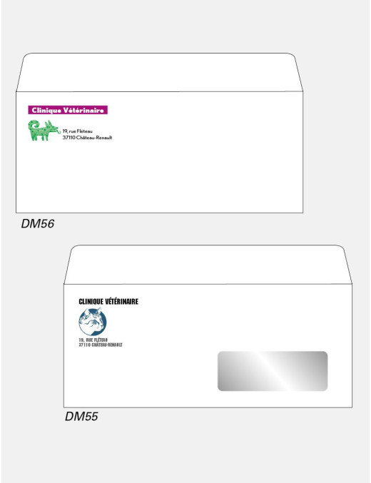 Enveloppe blanche de format standardisé autocollante avec bande de protection.